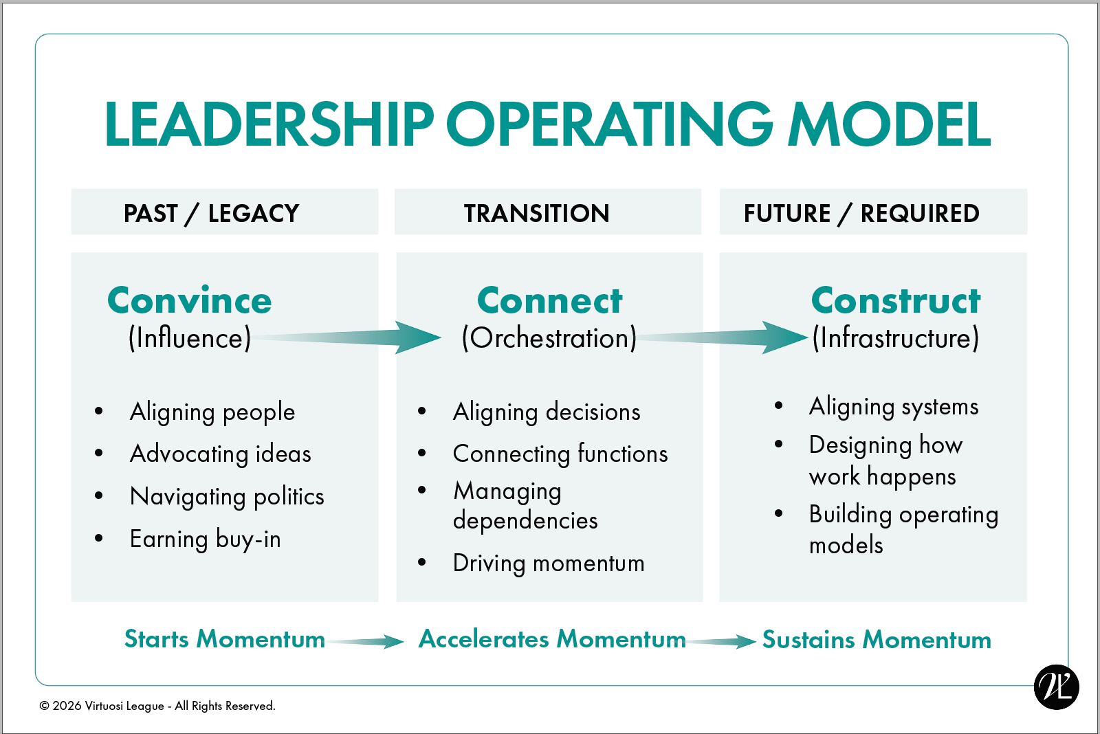 This shift moves leadership beyond influence, toward designing systems, shaping operating rhythms, and building the infrastructure that drives sustained momentum.